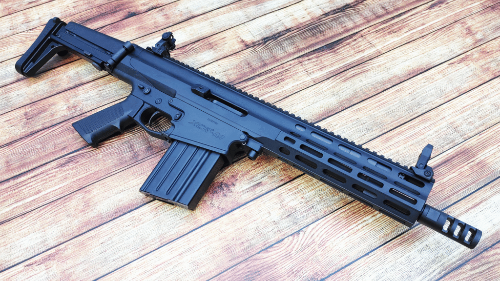 Designed for intermediate calibers, the XCR-L modular tactical rifle can fire .223/5.56 NATO, .300 AAC Blackout, 7.62×39, 6.8 SPC, 6.5 Grendel, 6mm ARC, and more – essentially combining the roles of an AR-15 and an AK-47 in one platform.